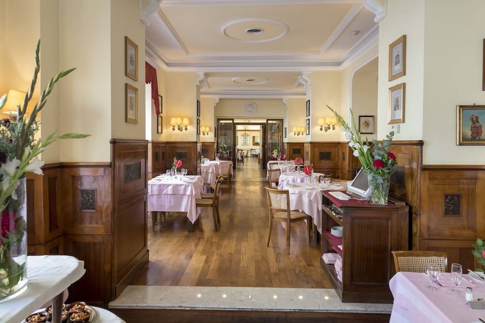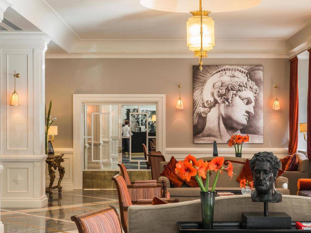 在酒店的餐厅里,您可以品尝到及国际精致的菜肴,佐以精美的葡萄酒。酒店将传统与创新完美结合, 是罗马装饰艺术最好的范例之一。这座十层的优雅建筑是市中心较高的建筑,整体呈现略显奢华的庄严风格,海洋主题贯穿其中,珍贵木材照壁、雕刻、马赛克,古老地中海地图等都让人不禁忆起大航海时代的壮阔。