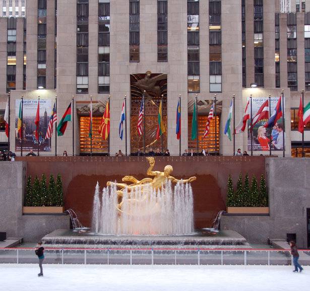 Rockefeller Center is a landmark for art, dining, and entertainment. Visitors can enjoy the Top of the Rock Observation Deck, ice skating at the famous rink, and festive decorations during winter.