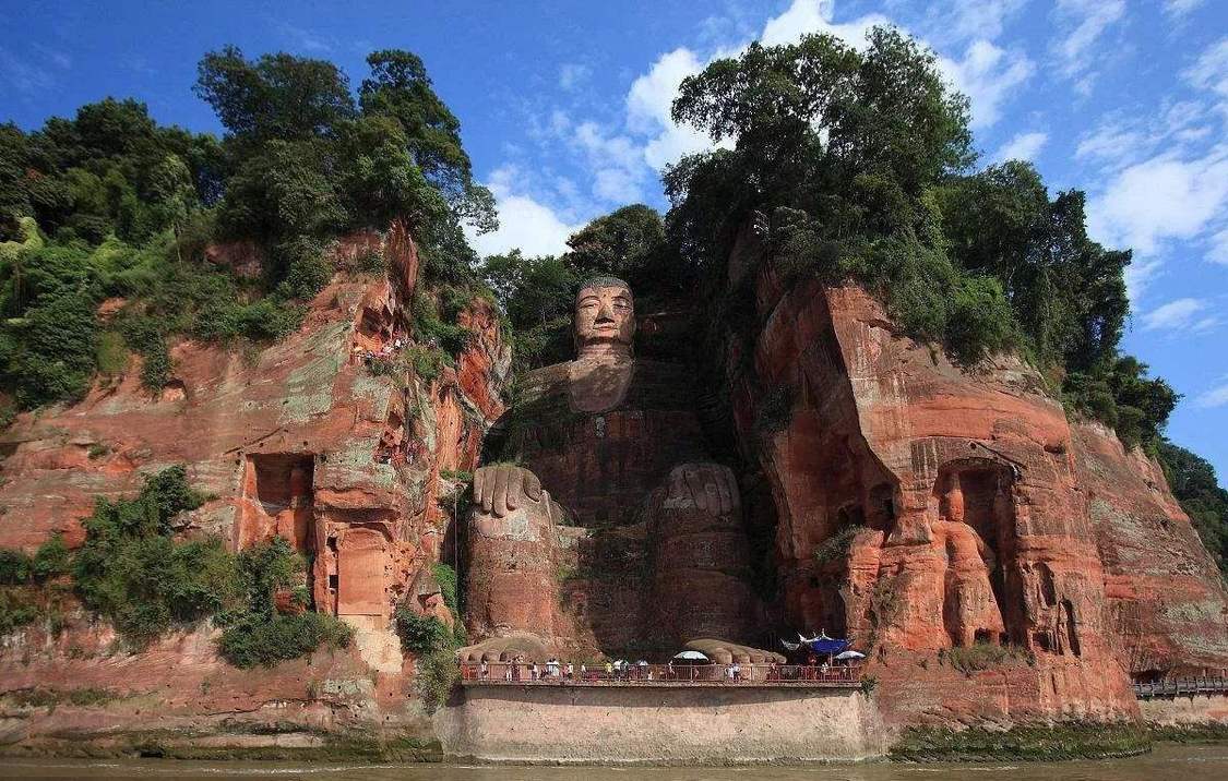 乐山大佛又名凌云大佛,坐落于四川省乐山市市府南岷江东岸的凌云寺岸边,濒临大渡河、青衣江和岷江三江交汇的地方。大佛为弥勒佛坐像,通高71米,是中国摩崖石刻中最大的雕像,素有“山即佛,佛即山”之称。大佛雍容庄重,双手抱膝,气魄雄伟,历经千年风霜,至今任坐于滔滔江水之畔,静观人间沧海。