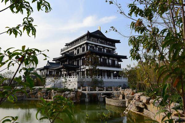 在栖霞山陆羽茶庄,有山就有景,有景就有景,位于龙山之上,为纪念“茶圣”陆羽而建,是栖霞山上的一座仿唐建筑群,由楼、亭、廊组成,共四层,最高层可一览栖霞山的全景,也可远眺南京城。