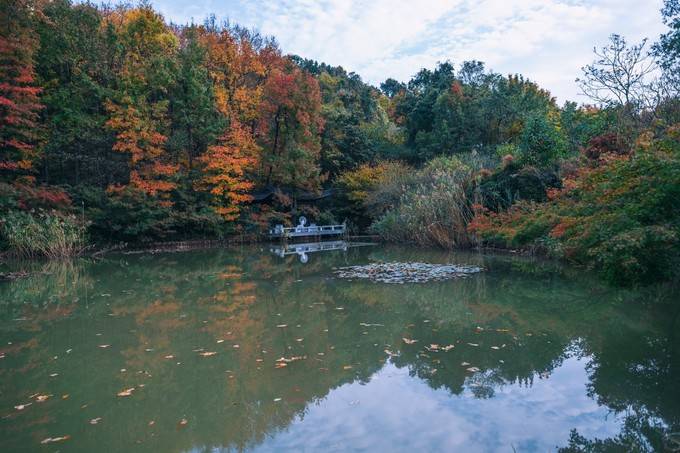 位于栖霞山最高峰凤翔峰西南部,与红叶谷毗邻,海拔200米,也算是比较高的一个景点了,这里是我最喜欢的一个景点了,大概是因为这里有水的存在,有水的地方感觉到有灵气,枫林湖的面积虽然不大,但四周枫树环绕,加上湖岸假山、亭台楼阁,满眼都是江南园林的古典美。