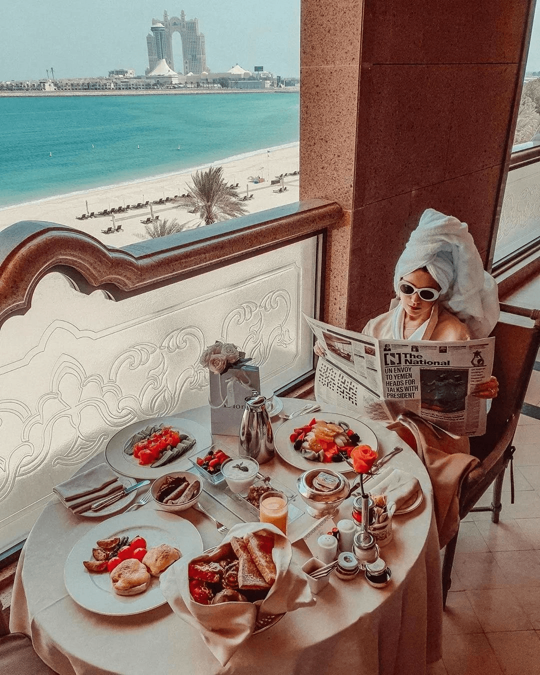酒店位于一个私人海滩上,在这个酒店就可以欣赏到阿布扎比海峡的全景,非常壮观美丽!酒店的豪华房间是以现代阿拉伯风格的装潢为主,每一个房间都拥有温馨而丰富的色彩以及别致而典雅的家具陈设~配备了享有花园或阿拉伯湾景致的阳台或露台,在这个露台去拍照会非常好看!