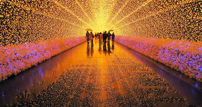 位于三重县桑名市长岛度假村的“名花之乡”,以花卉为主题,每年春夏季节将变成壮观的玫瑰或郁金香大花园,秋天则被树红叶染成锦绣。特别值得一提的是,每年冬季为迎接新一年主题,精心打造的灯光展场将点亮长岛,仿佛要穿越时空般。无比浪漫美妙,令人难以忘怀。