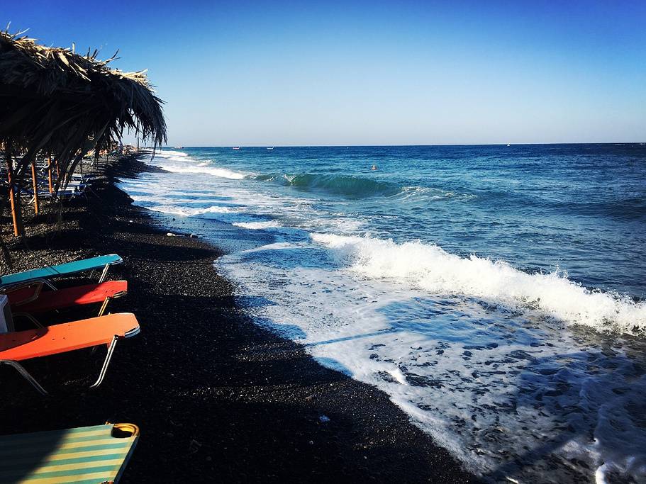 黑沙滩位于卡马利镇,是一条由火山灰沉积形成的黑色绵长海滩,它是东部圣托里尼岛最著名的海滩之一。每年旅游旺季,游客们不断涌向这里,沙滩上人头攒动,非常热闹。黑沙滩位于卡马利镇,是一条由火山灰沉积形成的黑色绵长海滩,它是东部圣托里尼岛最著名的海滩之一。每年旅游旺季,游客们不断涌向这里,沙滩上人头攒动,非常热闹。