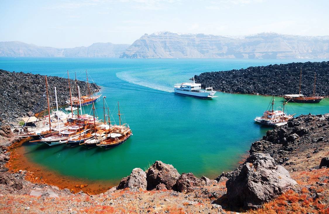 这座火山曾多次喷发,从海底火山逐渐成长为一个冒出海面的火山岛。现在,它处于休眠期,比较安全,但是到火山口探险依旧是来圣托里尼岛必不可少的游览项目。夏季每天都有船只从圣托里尼出发前往火山岛,许多旅行社都会组织火山旅游活动,包括登山探索火山、欣赏温泉美景,到Thirasia岛享受美食等等,然后回到圣岛欣赏绝美的落日。