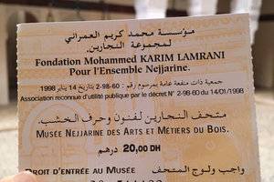 修复工作从1990年持续到1996年,历经努力重现了往日的繁华景象。而且,2500万迪拉姆的投资使得那扎琳娜区建立了一个木工艺品博物馆,展示了整个老城区的传统木工制品,其中既包括古老的作品,也包括现代创作。通过这些工艺品,我们可以看到摩洛哥历史的演变。该博物馆由Mohammed Karim Lamrani基金管理,于1998年5月23日正式对外开放。 地址 Place an Nejjarine, Fes, Morocco