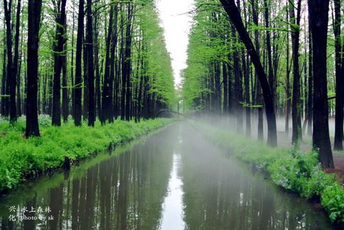 李中水上森林公园原本是一片荒地,经过治理,如今已成为江苏省最大的人工生态森林。园内种有10万余株水杉、池杉等品种树木,而在每个夹沟里,游弋着各色鱼虾。