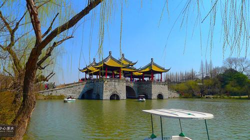 著名的湖上园林景色壮丽,自然风光美不胜收。园内建有多座景观建筑,彰显着扬州的雍容华贵,因此自豪地享有“园林之盛,甲于天下”的美誉。瘦西湖因其特殊的瘦长形态而得名,湖面时宽时窄,两岸树木葱茏,建筑古朴典雅,景观瑰丽多彩。园区内的多座桥梁各具特色,其中五亭桥上的风亭极具南方特色。在满月之夜,十五个桥洞中的月亮倒映在湖中,而二十四桥则延伸成长虹卧波的美景。每到夏季,瘦西湖开放夜游,游客们可以欣赏到亭台楼阁灯光璀璨、月影倒影湖中的美景。沿湖两岸和桃花坞是观赏瘦西湖近30种桃花的主要景点。而位于湖畔的万花园内的湖上梅林在花开时节更加引人注目,近万株梅花争相绽放,是扬州最具观赏性的赏梅胜地之一。