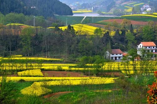 田野中盛开的油菜花、田埂上的桃花、细碎的绿柳,还有远处的小村庄和茂密的山林,一起构成了一幅宛如画卷的色彩明媚的画面。无论是路过的行人还是特意前来游览的游客,都会被这美丽的景象惊艳到,沉浸其中,心情也变得明朗愉悦。在花海中,只有微风拂过带来春天的气息,和自然的清香才能被真切感受到。