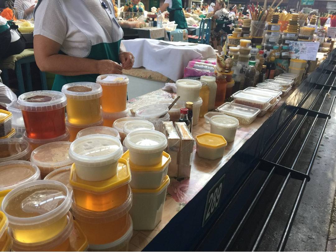 綠色市場是阿拉木圖的一個大型市場,提供各種商品,包括乾果、堅果、泡菜、蜂蜜、奶製品和肉類。市場內還有咖啡館,尤其是西南部的咖啡館提供便宜的烏茲別克美食。