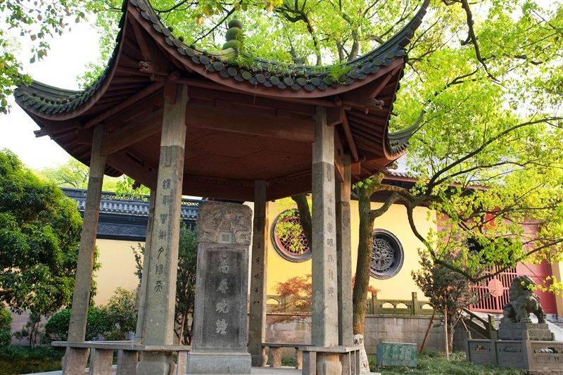 指南屏山淨慈寺傍晚的鐘聲,“南屏”是指淨慈寺後的南屏山,“晚鐘”是指淨慈寺內的青銅大梵鍾。青銅大鐘高3米,重10餘噸,鐘上鑄有6.8萬餘字《妙法蓮華經》。每天大概16:00左右,可以聽到大木槌撞擊擺鐘的聲音,很雄厚、很有力。每逢除夕之夜,許多市民和遊客還會聚集在淨慈寺鐘樓內外,舉行新年撞鐘活動。