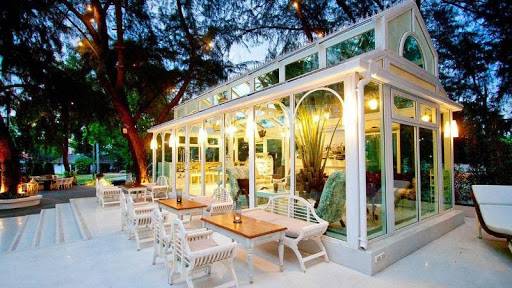 海邊的玻璃屋沙灘餐廳,面朝大海,狗狗們慵懶地卧在沙灘打盹,藤椅,木質桌椅,樹幹間掛起的一串串燈珠,夜晚會別有一番情調,非常浪漫!