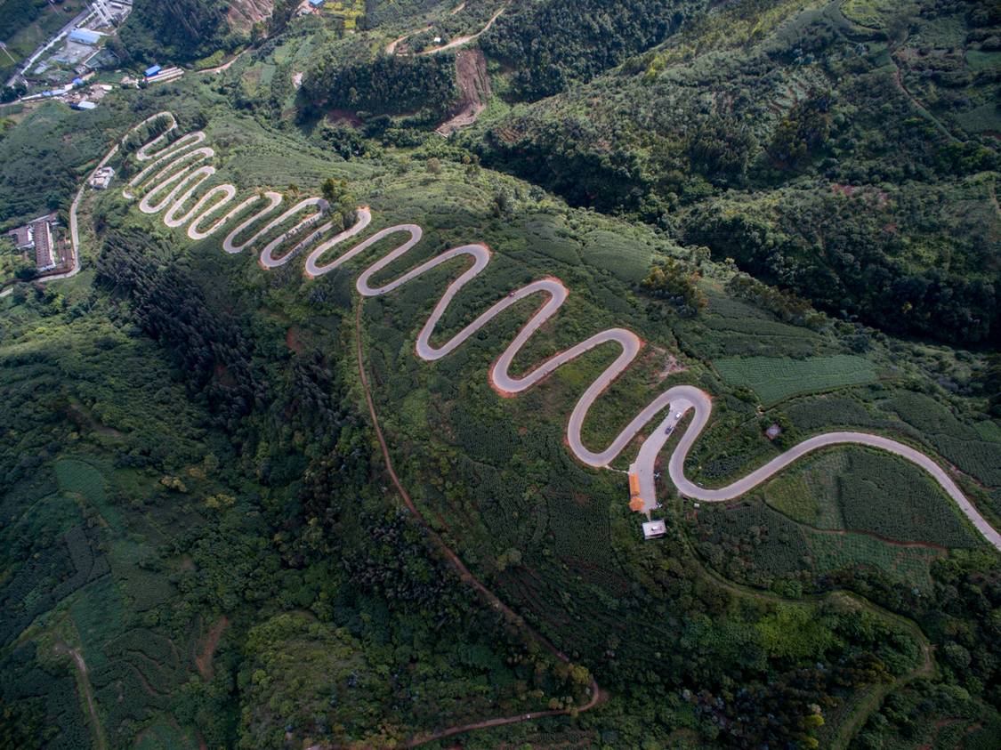 在雲南省昆明市宜良縣城西有一條通往靖安哨的盤山公路,公路依山樑而修,彎彎曲曲。短短7公里的公路,共有68道拐。這條蜿蜒曲折的公路,被有關專家視為世界公路史上的奇蹟。