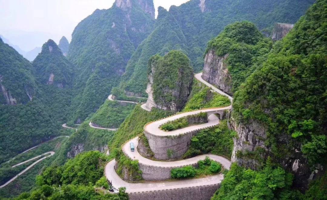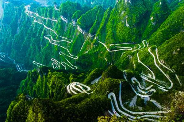 通天大道是位於著名的張家界天門山國家森林公園的一條盤山公路。天門洞以其接地通天的態勢,成為人們心中通天的門户,而通往天門洞的盤山公路也因此被稱為“通天大道”。通天大道共計99道彎,暗合了“天有九重,雲有九霄”之意。全長10公里多,海拔從200米,上升到1200多米。彎道多處有180度的急轉彎回廊盤繞!有“天下公路第一奇觀”之稱,被公認為“全國十大盤山公路之首”。