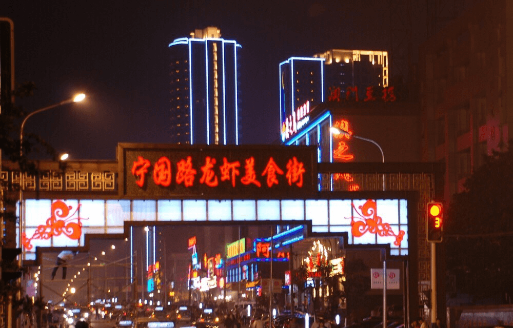 在合肥,一提到龍蝦,很多人都會首先想到的是寧國路。清爽衞生,風景秀麗的寧國路龍蝦美食街區自發運作,成為享譽合肥乃至全國的特色品牌,寧國路夜市成為合肥人夏夜聚會的首選。"一到晚上,寧國路上到處都是小攤,熱鬧極了。"一隻龍蝦和一隻啤酒,坐在露天的大排檔裏,大口吃着,味道好極了!據説不少明星也曾到寧國路的龍蝦店吃過一口龍蝦。雖然寧國路的美食街是龍蝦街,但這裏還是有很多的小吃店,燒烤、炒菜、海鮮粥、火鍋等等,各種各樣的美味,讓人食不果腹。