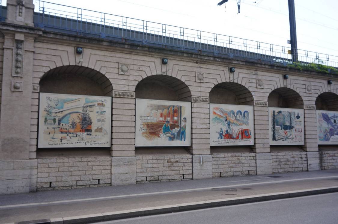 La Fresque du Centenaire,是一組24幅車站連環壁畫,在法語中Centenaire表示百年的意思。它位於Jean-Macé車站附近,沿着Berthelot大道的鐵路橋下的支撐牆上。這些壁畫講述了羅納河左岸的一個故事,因此它有時也被稱為“羅納河左岸的壁畫”。這個目的地位置靠近里昂光明壁畫,只需要坐車到Jean-Macé車站下車就可以到達。