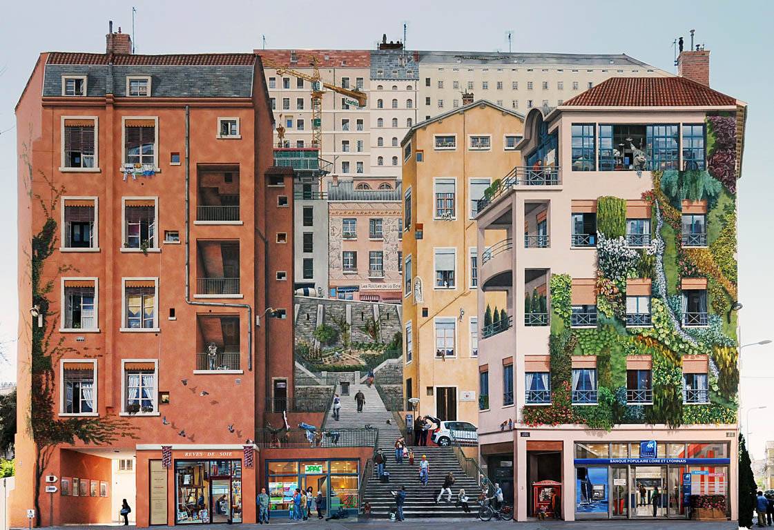 坐落於里昂的紅十字區,Le Mur des Canuts是一個非常逼真的紡織工人牆,其台階部分表現得非常生動,能夠真實地感受到落差。壁畫面積近1200平方米,是歐洲最大的壁畫之一,其名字也恰如其分地紀念了曾經無數艱辛工作的紡織工人。現在的紅十字區已經不是當年的模樣,但是許多人仍然來這裏,尋找當年紡織業的歷史痕跡。