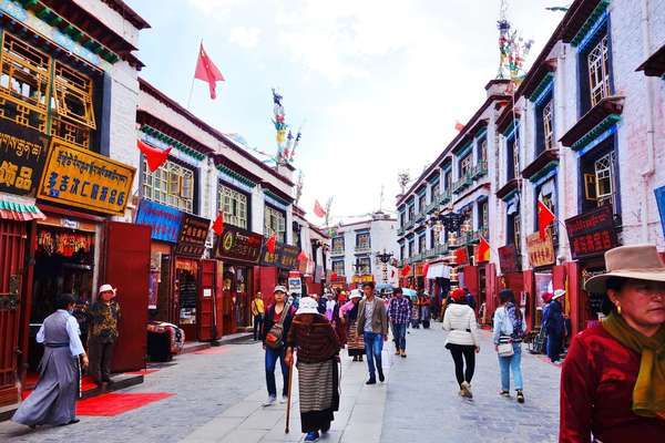 八角街又名八廓街,位於拉薩市老城區,大昭寺周圍,是拉薩高民的轉經道和商業中心,大到家用電器,小到生活器皿,應有盡有,比較完整地保存了古城的傳統面貌和居住方式。