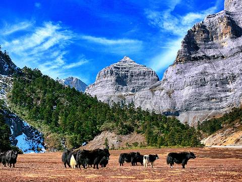 香格里拉大峽谷是一個典型的U型峽谷,是落差200-1000米的懸崖峭壁。在峭壁中景區修建了一條2.5公里的步棧道,可以沿路觀察峭壁上窘態各異的植物,其中有不少名貴藥材哦。向下看是緩慢流淌的崗曲河,冬季正值枯水期,午後的陽光照下來,一幅世外桃源的景象。最佳拍攝位置:迴音壁高空玻璃棧道。