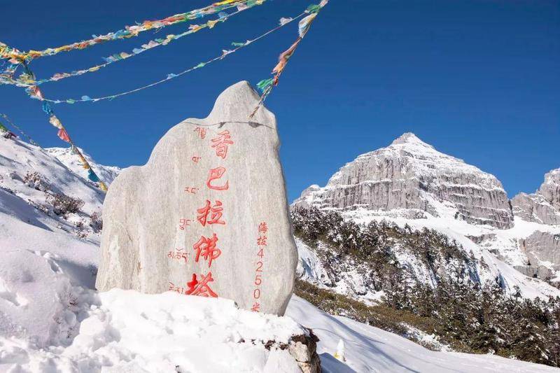 香巴拉佛塔並不是一個人為打造的佛塔,而是天然形成於雪山之中的“佛塔”。也是巴拉格宗景區無論徒步還是乘車遊覽可以抵達的最高處。從巴拉村往上開至3000多米處還是鬱鬱蔥蔥的被植被覆蓋,再往上則是一派雪域高原的景象。香巴拉佛塔本尊,它的埡口處海拔4250米,是無上絕倫的藏地秘境,也是人神對話的靈性神山佛塔。