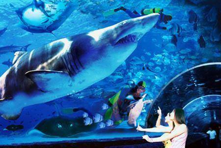 這裡有中國第一座海底通道,漫步在波光粼粼的幽藍海底,300餘種、近萬尾海洋生靈觸手可及;這裡有北極狐、北極狼、北極熊、南極企鵝等,讓您接觸極地動物、感受極地風情的南北極歡樂大本營; 這裡有國內最新高科技多媒體體驗館,分為新奇刺激的深海體驗區和國內最大的超IMAX天幕影院區,為你打造一場步步驚心的深海冒險之旅!