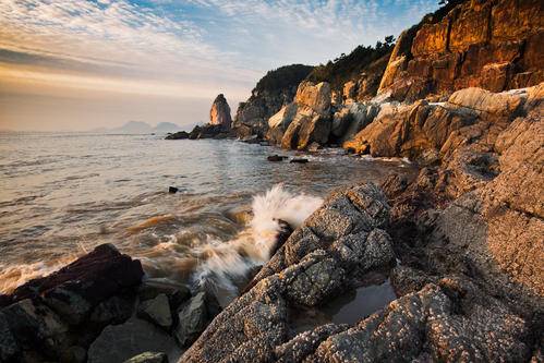 花岙島位於象山南部的三門灣口洋麵上,島上峰俊石怪,巖奇洞幽,特別是佈列在一公里海岸上的結晶體石林,氣勢雄偉壯觀。各種細表條狀石頭密密麻麻靠在一起,排列有序,長短不一,粗者須兩人方能合抱,高者達到五六層樓高;有的似倚天長劍,有的似臨海之鶴,人稱“仙人鋸巖”。專家考證後認為,花岙島的石林實際是侏羅紀晚期的中心式火山岩漿的通道。四邊或六邊形的石柱群是緻密的黑色細粒玄武岩,表面因海水侵蝕和風化而呈黃褐色,是火山岩的重要原生構造,即火山爆發後,岩漿在均勻冷卻和緩慢收縮的條件下產生一種垂直裂變,從而形成奇特的“海上石林”景觀。