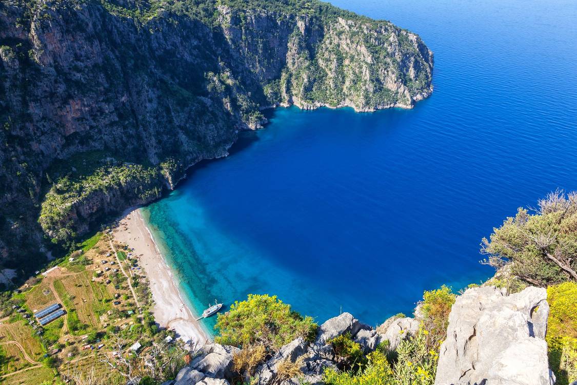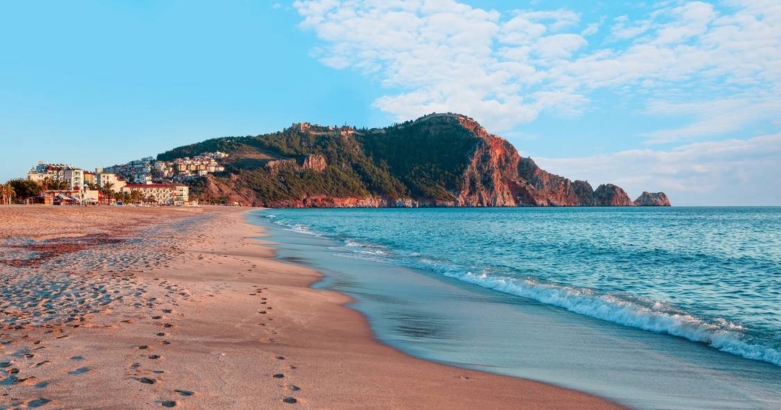 這座藍色標記的海灘因其湛藍的地中海水域和金色沙灘倍受讚譽,是土耳其最受歡迎的海灘之一。沙灘上滿是來自世界各地的喜歡軟沙的遊客,在這裡沐浴著陽光海風,休閒度假。