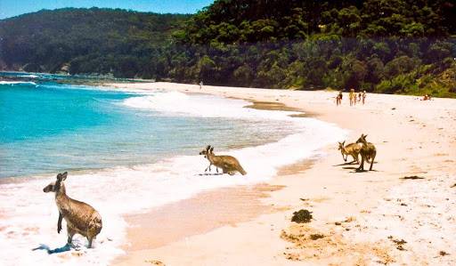抓拍沙灘上休憩的袋鼠;沙灘袋鼠景象非同一般,會讓您終生難忘。新南威爾士南岸上生活的東部灰袋鼠喜歡休憩和沐浴陽光。草地和沙地上可以見到它們成群結隊地出現。在悉尼南部約270公里(168英里)、廣受喜愛的衝浪和叢林健行地點,很多袋鼠也毫不介意成為您的拍照模特。