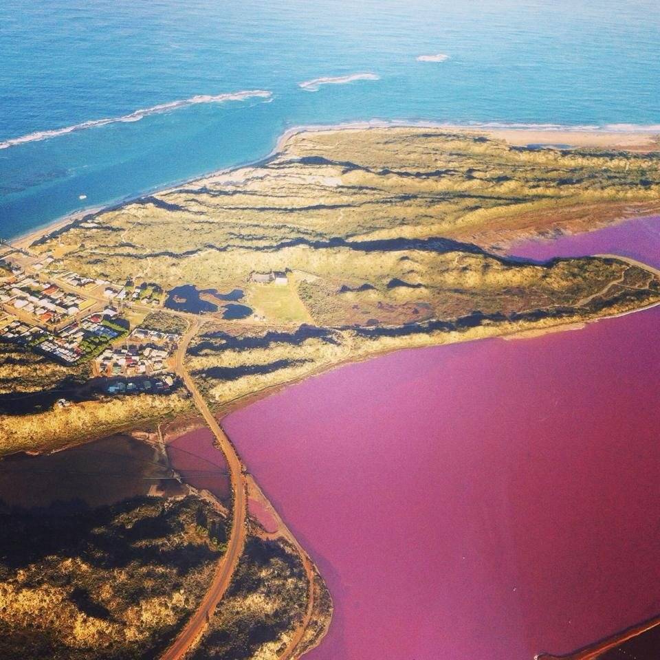 從珀斯沿國家1號高速公路(National Route 1)行駛534公里至赫特瀉湖,約6小時到達。從Geraldton出發行車1小時左右到達粉湖。飛機空中觀光30分鐘到達。
