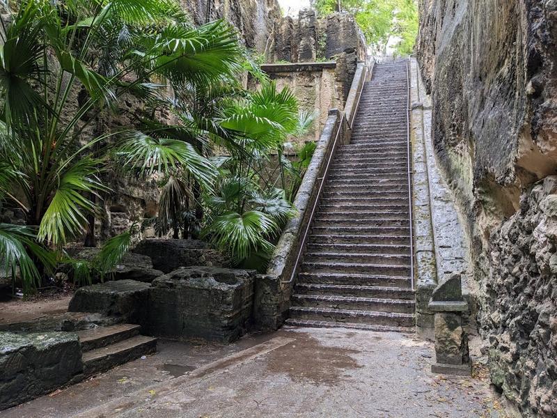 102-ft., 65-step staircase carved by slaves from limestone in 1793 as shortcut to Fort Fincastle.
