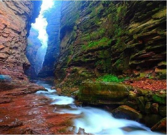 龍潭大峽谷是一處國家5A級景區,主要以典型的紅巖嶂谷群地貌景觀為特色。這條高峽甕谷經過十二億年的地質沉積和260萬年的水流切割旋蝕而成,被譽為世界上獨一無二的自然奇觀。