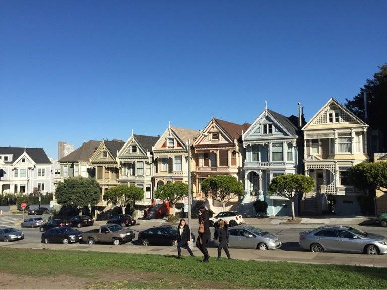 从阿拉莫广场公园(Alamo Square Park)眺望这些标志性的维多利亚式房屋是最佳选择,可以欣赏到城市天际线的如画背景。