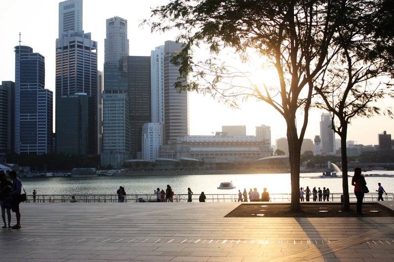 滨海湾金沙酒店的空中花园拥有无边泳池,站在上面可俯瞰滨海湾壮丽的城市景观。附近还有滨海湾花园,展示各种珍稀植物,夜晚灯光亮起时美轮美奂。