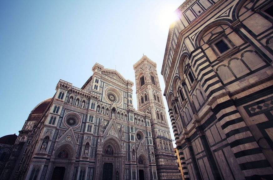 紧邻佛罗伦萨大教堂的哥特式钟楼,外墙饰以彩色大理石和雕刻,登顶可俯瞰穹顶与城市屋顶。