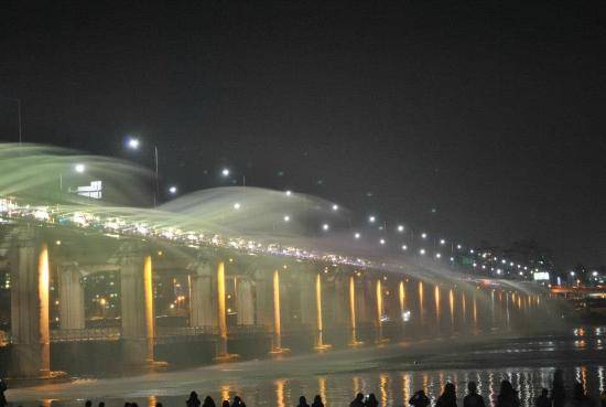 设置在盘浦大桥两侧的音乐喷泉景观,夜间配合灯光和音乐呈现多彩水幕表演,被称为世界最长桥梁喷泉之一,是欣赏汉江夜景的热门亮点。