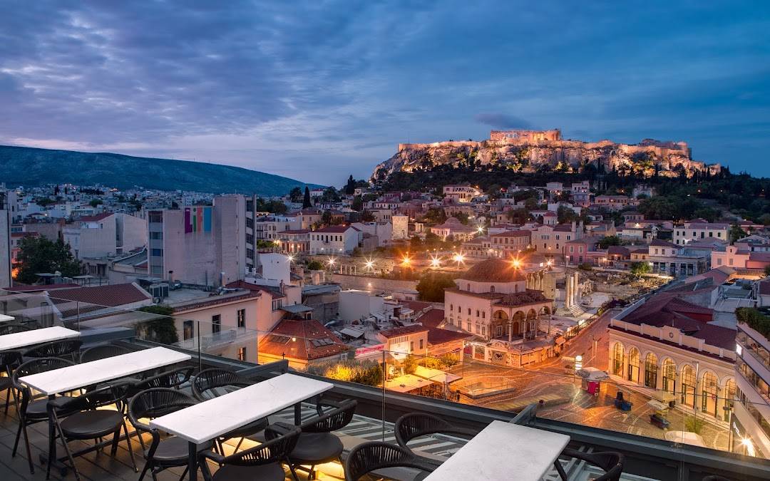 A for Athens 是位于莫纳斯提拉奇广场附近的精品酒店,顶楼酒吧和露台以正对雅典卫城的视野而深受欢迎。酒店位置极其中心,紧邻地铁站与跳蚤市场,方便前往机场和港口,同时适合夜生活与城市漫步。