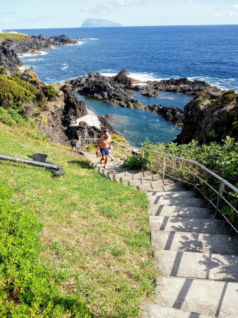 圣克鲁斯天然游泳池是位于弗洛雷斯岛圣克鲁斯小镇中心以北的熔岩岩石潮汐池。玄武岩脊保护着这些泳池免受开放海域的影响,形成了适合夏季游泳和浮潜的平静清澈水域。游客可以在岩石上晒太阳,并享受壮丽的大西洋海岸线;进入免费并全天开放,但设施较为基础。