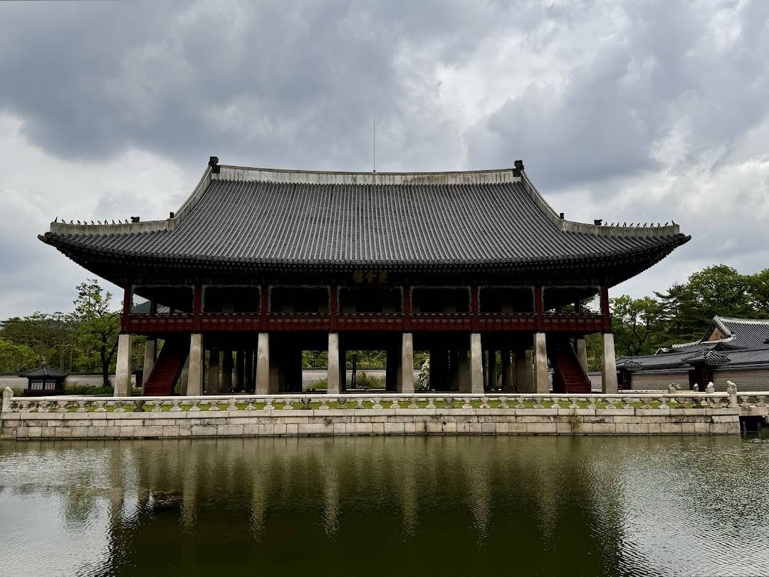 庆会楼是景福宫内著名的临水楼阁,修建在方形水池中央的石台之上,四周环水,以举办宴会、接待外国使节而闻名。倒映在水中的楼阁与远处山景构成优美画面,是游客身着韩服拍照打卡的标志性景点。
