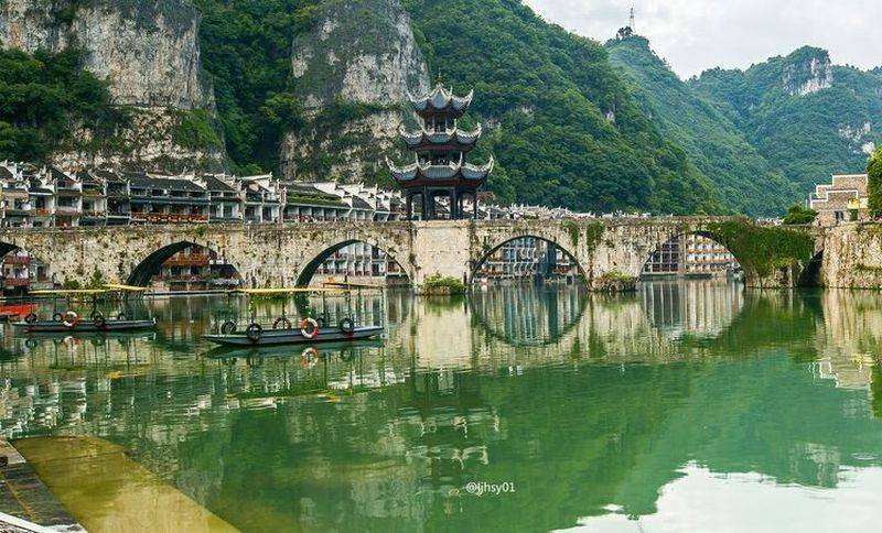 中国十大最美古城之一,山雄水秀,石屏山如雄狮昂首挺胸,姿态傲然,舞阳河如碧玉带,呈“S”形蜿蜒贯穿全城,水城浑然一体,倒影成画,形成了独特的太极图“九山抱水,一水分两城”,又被誉为中国山地贴崖文化博物馆,城内古街巷曲径通幽,石桥城垣错落有致,极富韵味。