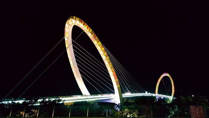 作为长江上的首个观光步行桥,景色是非常不错的。在这里拍几张夜景照,效果还是相当不错的。