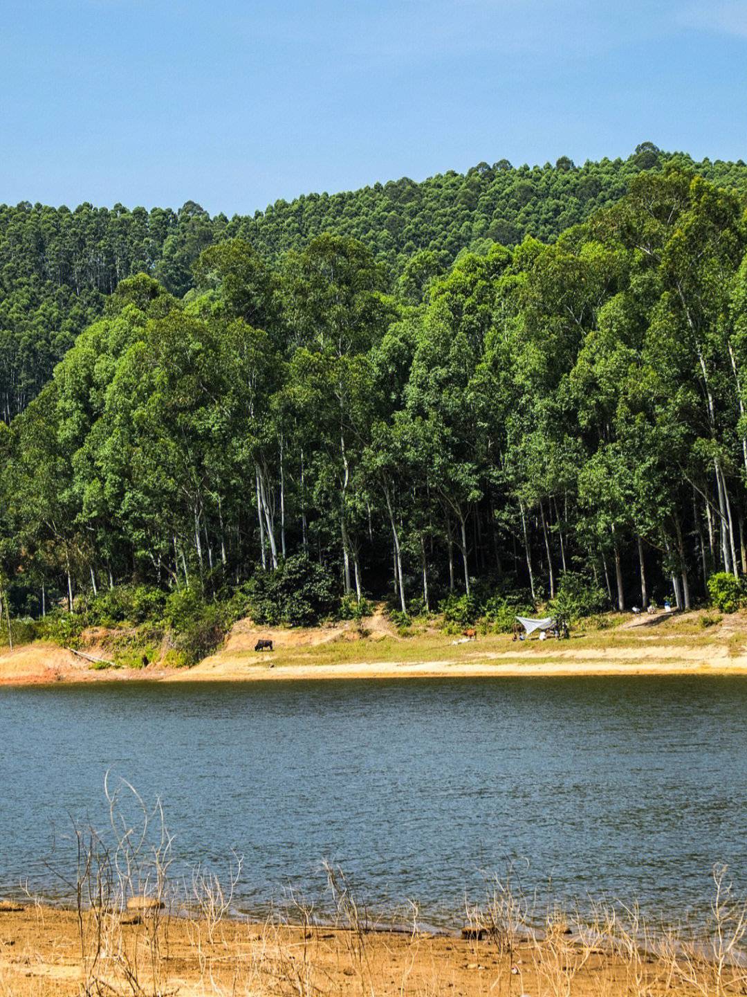 1、环着水库边都可以露营、钓鱼,可以直接开车到湖边,很方便。