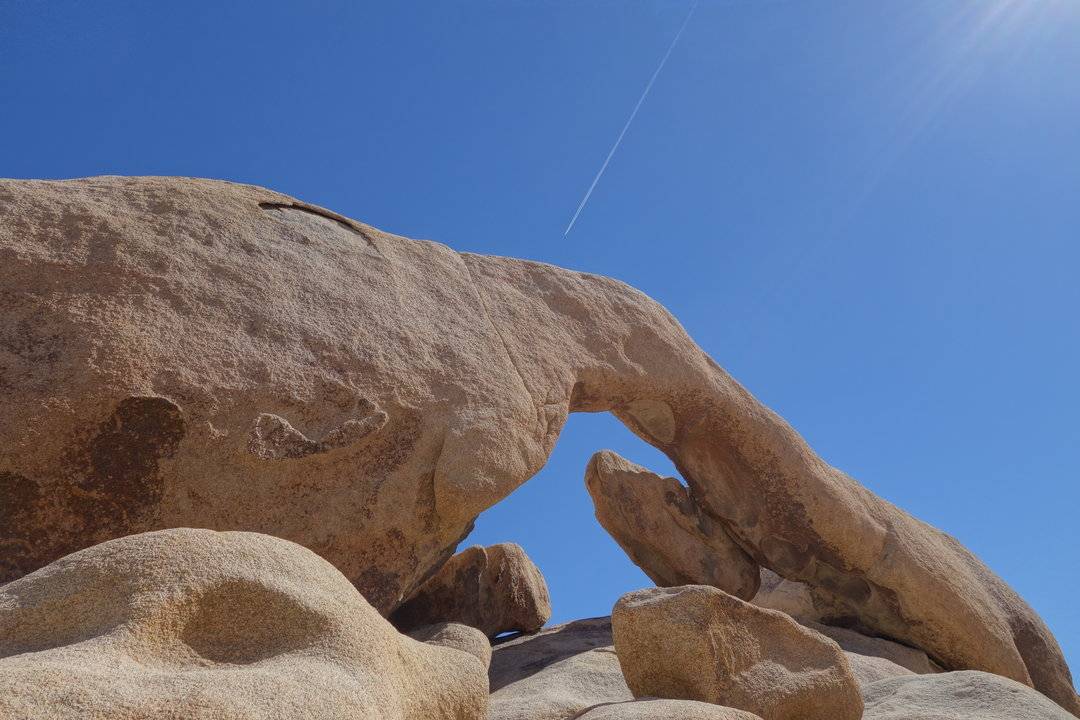 拱门石 Arch Rock Joshua Tree National Park Arch Rock Nature Trail, Joshua Tree National Park, California 4 国家公园自然风光 简介 相较于Arch国家公园的巨大拱门,Joshua Tree国家公园的拱门就像是小巧玲珑的小拱门,而且这个景点的路标并不是很明显。如果来到White Tank Campground的分叉口,需要往内部行驶寻找一个路口,然后左转靠边停车,沿着Arch Rock的trailhead步行约10分钟即可到达。 地址 Arch Rock Nature Trail, Joshua Tree National Park, California
