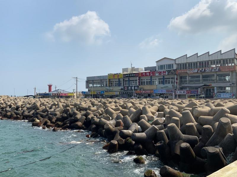 咸德海水浴场还是济州岛出产西瓜的重要产地,沿海的海鲜店供应新鲜的生鱼片。如果你喜欢钓鱼,海水浴场东边约2公里处就有北村钓鱼场,来这里感受纯朴的渔村生活也是非常不错的选择。