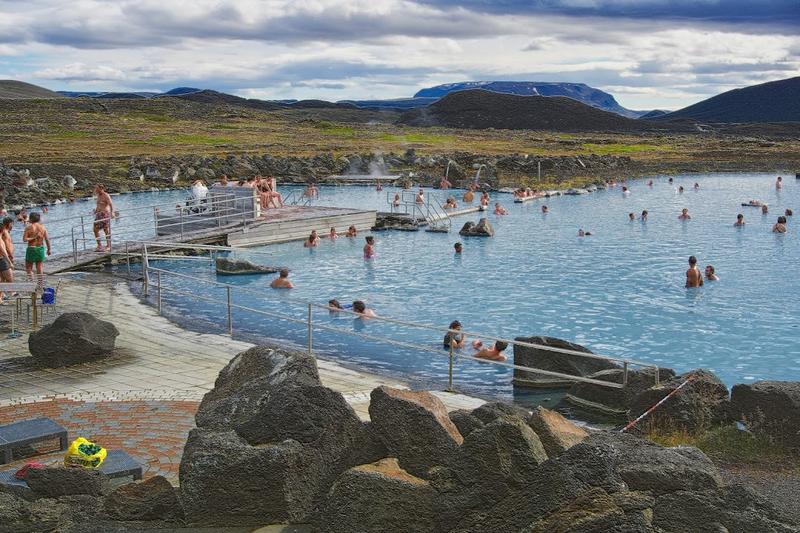 Lagoonlike outdoor baths with milky blue mineral-rich water, naturally heated by hot springs.