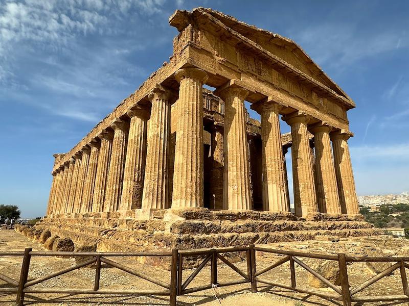 La Valle dei Templi是世界上最重要的考古遗址之一,自1998年被列为联合国教科文组织世界遗产。它位于山脊上,保存了许多希腊式神庙建筑。这些神庙首建于公元前五世纪,已经存在两千多年,是意大利境外最著名的古希腊建筑群之一。这些神庙矗立在翠绿的山峦之上,俯瞰着碧蓝的大海,远望无边的苍穹。协和神殿是此地唯一保存较为完整的神庙,而庞大的宙斯神庙则成为了废墟,但是它仍能让人想象到曾经的辉煌。售票处位于朱诺神殿旁。