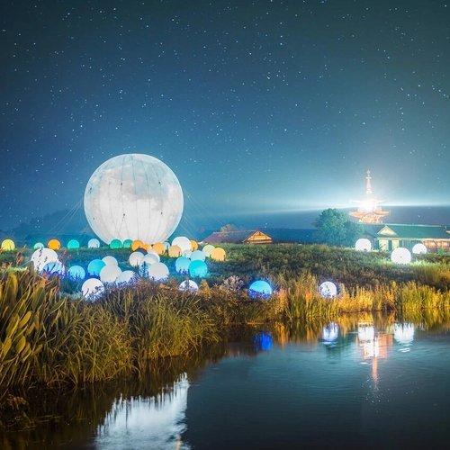 白天,您可以在唐风古韵的香月花街赏景、品尝美食,享受慢调时光;夜晚则可以欣赏精心制作的文化演出《禅行》,在空灵明净的禅境中体验“一花一世界,一叶一如来”的幽雅禅意。