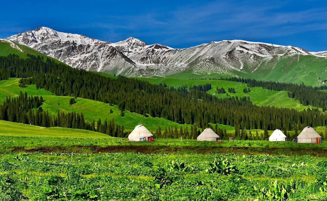 A famous grassland in Xinjiang, known for its lush meadows, forests, and streams, offering activities like horseback riding and scenic drives.