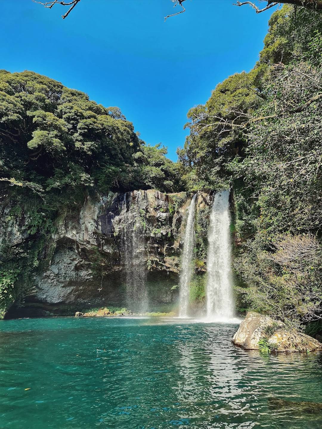 天帝淵瀑布是濟州一個全年都有吸引力的美麗景點。瀑布周圍是鬱鬱葱葱的綠色植物,其寧靜的氛圍使其即使在冬天也是一個必遊之地。