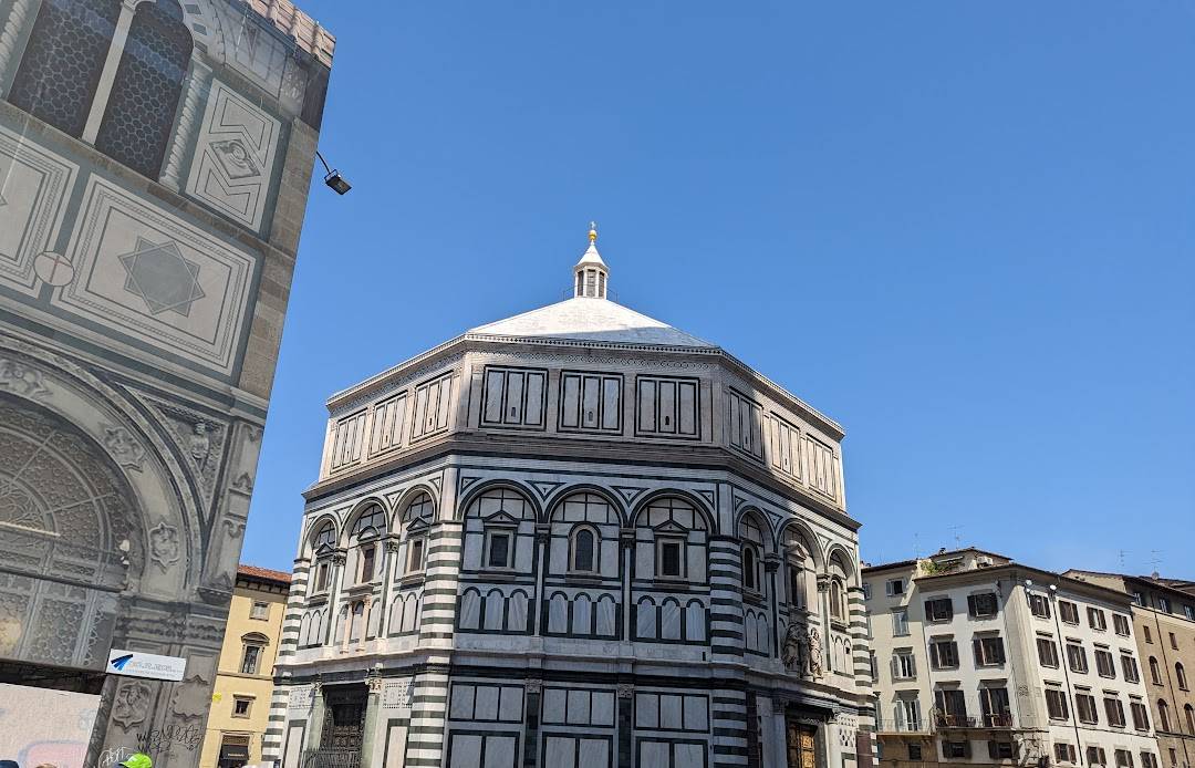 大教堂旁的八角形洗禮堂以其青銅大門聞名,其中“天堂之門”浮雕是文藝復興雕塑代表作。內部金色馬賽克穹頂極為華麗,是瞭解佛羅倫薩宗教藝術的重要場所。
