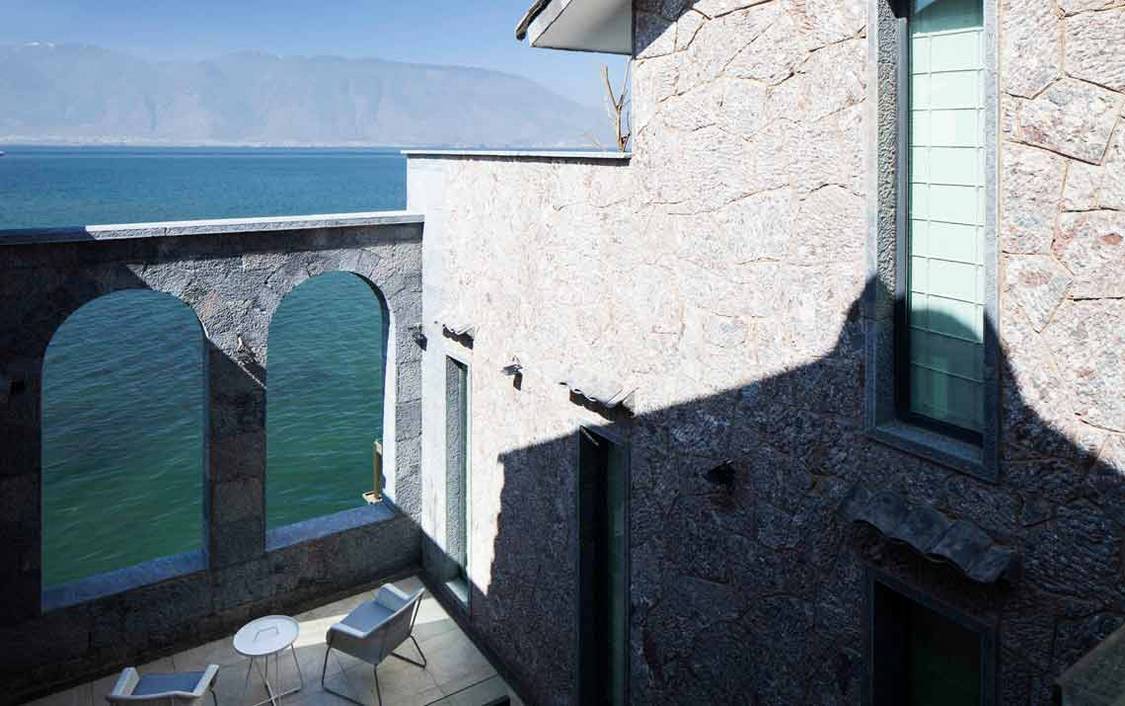 臨水而居,風起的晚上可以聽到海浪拍岸的聲音。酒店設計和室內軟裝都是由知名設計師親自設計,每一個細節都展現極致的美感。3層白族式石砌建築,由本土白族知名建築設計師八旬精心打造,室內軟裝由廣州獨立設計師易春友為酒店量身定製,是一個酒店式精緻會所。住在這裏,在露天聆聽洱海微波,遠眺蒼山,漁歌微遠,偶有白鳥飛過。